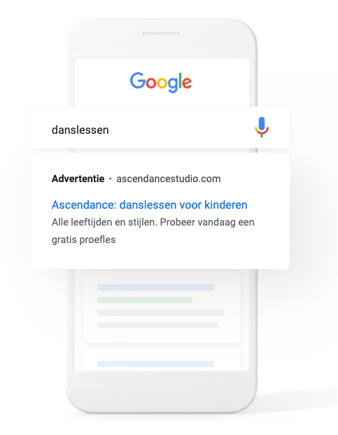 Deze advertenties zetten aan tot actie op de website wanneer gebruikers zoeken naar soortgelijke producten of diensten. Ze worden weergegeven naast de Google-zoekresultaten en op andere partnersites van Google, zoals YouTube, wanneer mensen zoeken naar producten of diensten die een adverteerder aanbiedt.