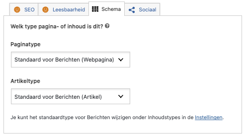 In deze sectie is er niet veel mogelijk met een gratis account voor Yoast, maar het gaat voornamelijk om de weergave van een website op sociale mediakanalen (OpenGraph tags).